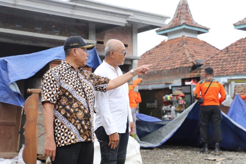 Tiba dilokasi Pj Bupati Jombang langsung menyapa warga dan melihat kondisi kerusakan yang terjadi. Selain itu juga memberikan bantuan dan memotivasi warga.