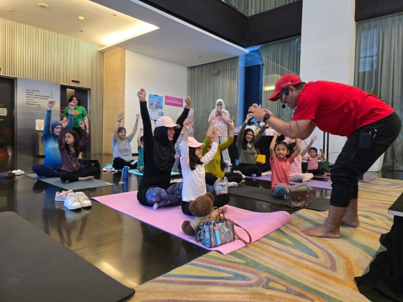 Dipandu oleh Coach Diex Poer, sesi yoga berlangsung dalam atmosfer hangat dan menyenangkan. Walau beberapa gerakan terasa sedikit menantang, para ibu dan si kecil tetap berusaha mengikuti setiap instruksi dengan antusias. Keceriaan terpancar dari wajah mereka sepanjang sesi, menggambarkan kuatnya ikatan yang tercipta melalui aktivitas bersama.