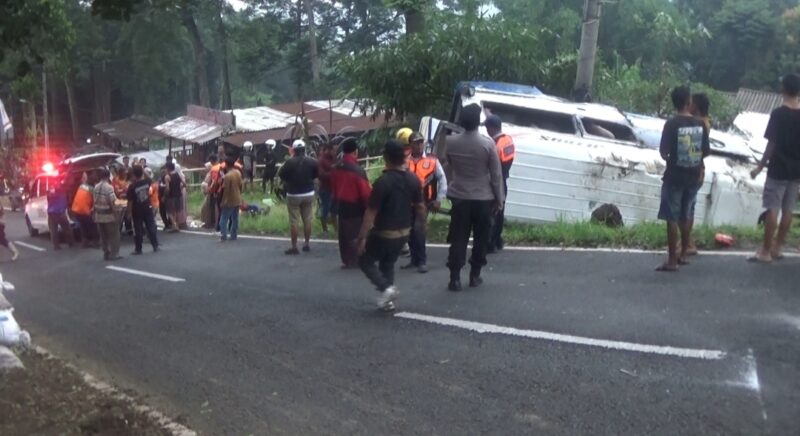 “Saya tidak tahu persis kejadiannya, tadi korban sudah dibawa dua kali. Setelah itu saya tidak berani mendekat karena kendaraannya blong. Di dalam ada anak-anak, sekitar dua anak kondisinya parah sampai tidak sadar. Jalur ini memang sering terjadi rem blong karena turunan tajam,” ujar Widia.