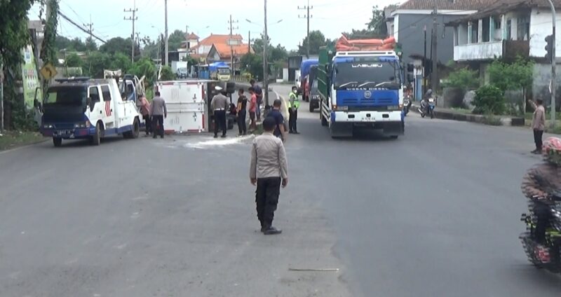 MOJOKERTO, Indexberita.com – Sebuah truk box flizer bermuatan ayam frozen seberat 5 ton mengalami kecelakaan tunggal di area Prapatan lampu merah Desa Lengkong, Kecamatan Trowulan, Kabupaten Mojokerto pada Sabtu (22/11) siang. Truk bernopol B 9932 UXZ yang dikemudikan Nuansa Prima (30), warga Pematang Siantar, Medan, itu menabrak tiang PJU hingga akhirnya terbalik di bahu jalan.